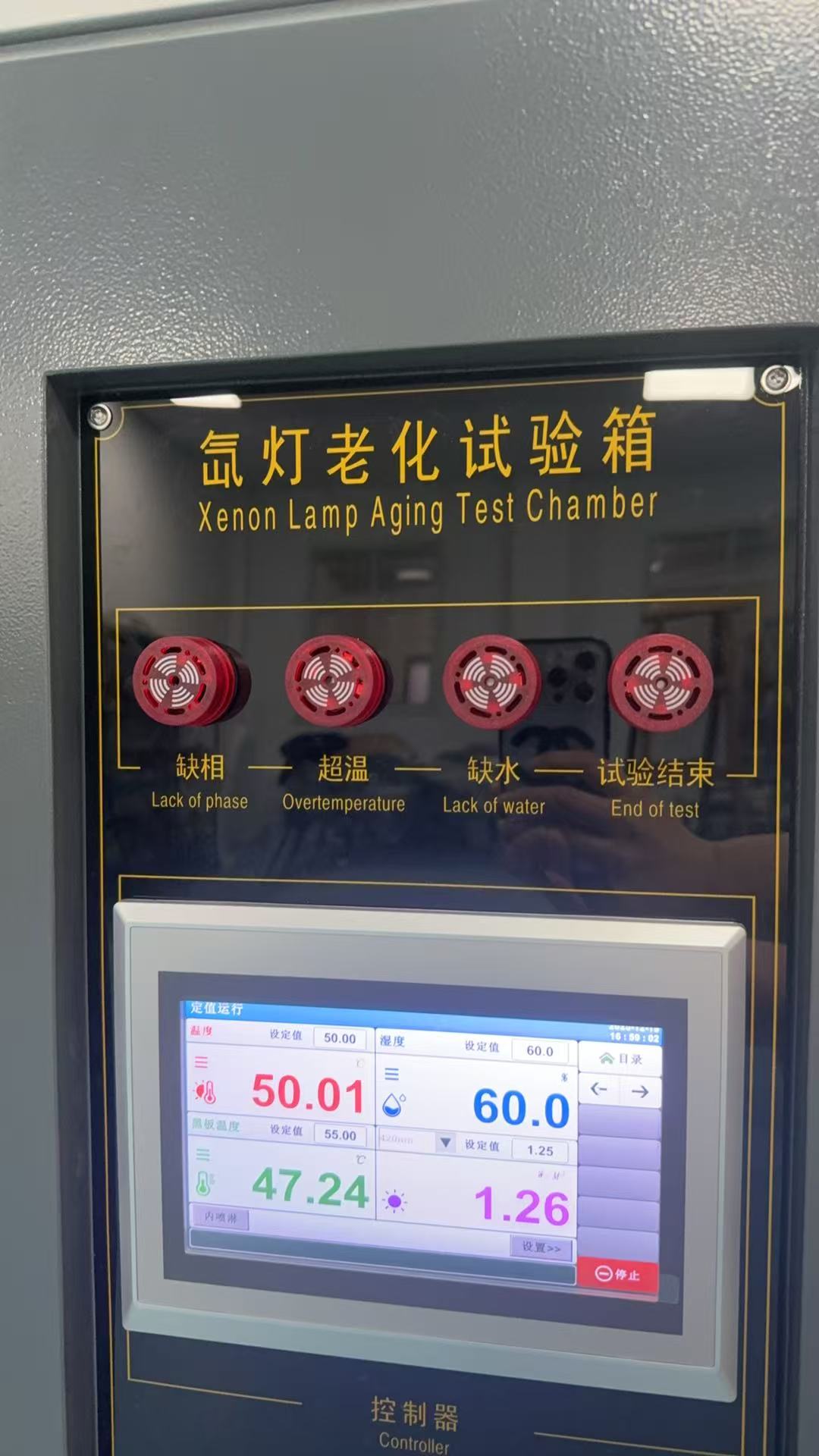 | 喷淋控制 | 1、喷淋均匀性调节:利用控制器的人工控制功能,在开门状态下观察喷淋状况,从而加以调节或更换喷头; 2、喷淋状态监控:机器配置了喷淋装置,喷淋装置模拟下雨时的温度剧变和雨水侵蚀,喷洒均匀。什么时候喷淋、喷淋多长时间,都由客户自由设置; 3、水质:去离子水(固体含量小于20ppm) 4、具有储水箱水位显示; 5、喷出的水可循环利用; | ||||||